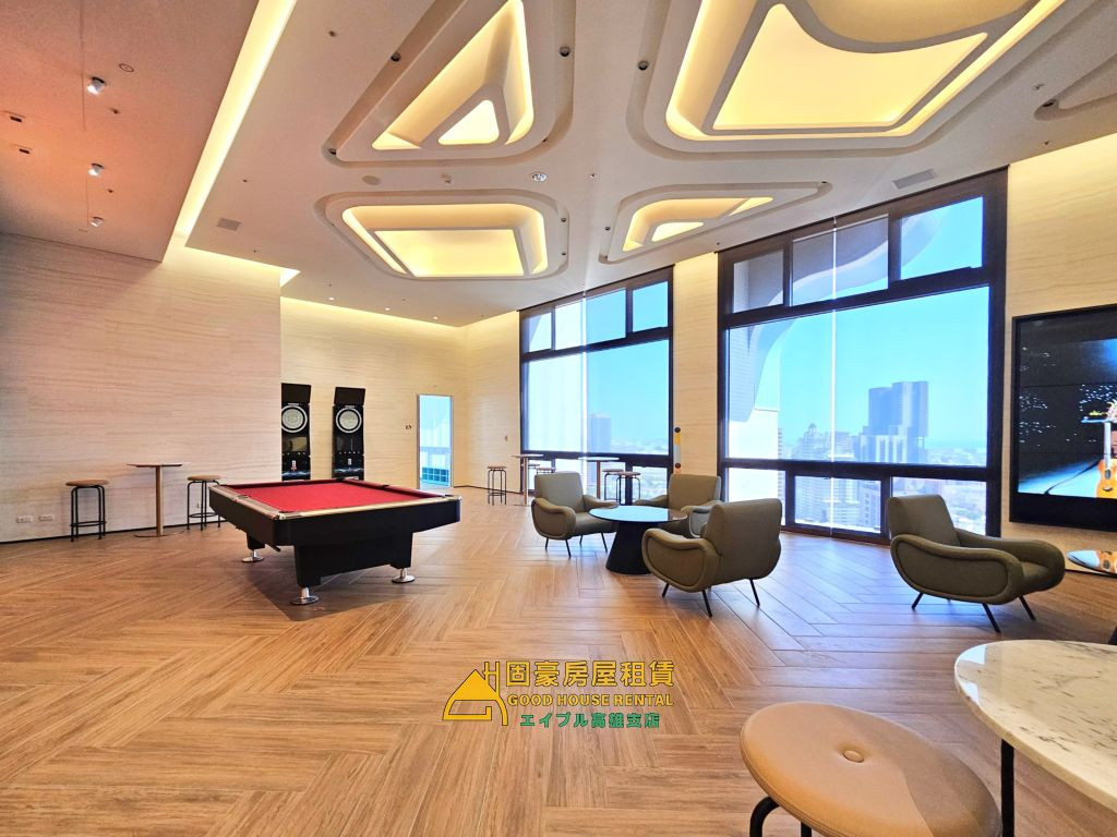4.24小時飯店式管理,公設有健身房、環保室、視聽室、KTV、宴會廳、游泳池、兒童遊戲室...等,公設豐富。