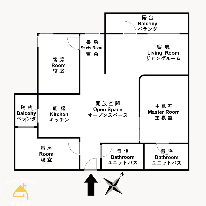 5.格局3房開放空間, 1廳2衛2陽台, 前後陽台自然採光明亮 ,傢俱家電齊全