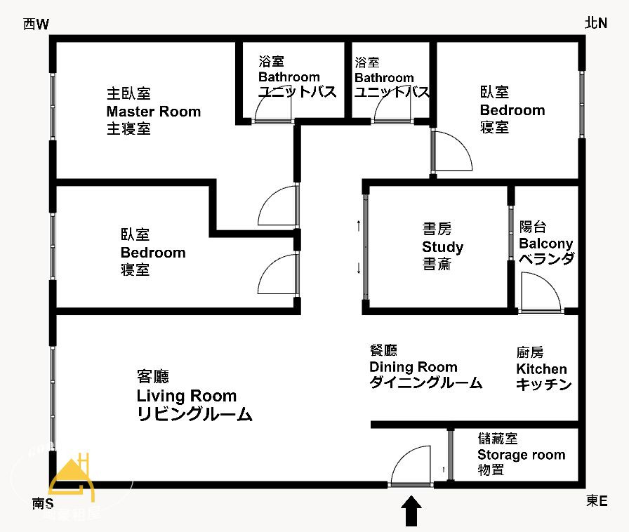 4.四房格局,三間房間空間舒適,其中一間規劃為書房
