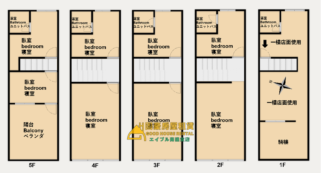5.僅2-5樓出租,已重新整理與拉線,格局方正,每層樓都有廁所,2-3樓有電熱水器可洗澡使用