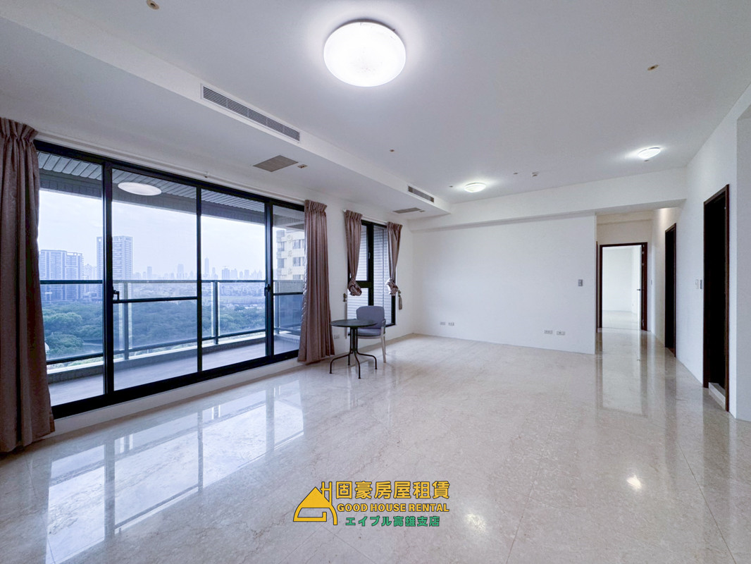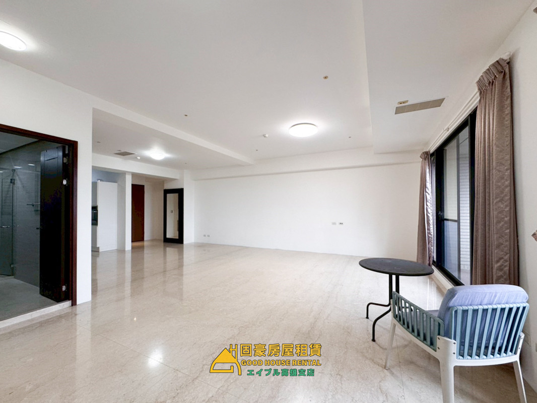 4.室內空間46坪不含陽台,超大客廳餐廳空間,中高樓層可直接挑望愛河,一層三戶兩部電梯,住戶品質佳。