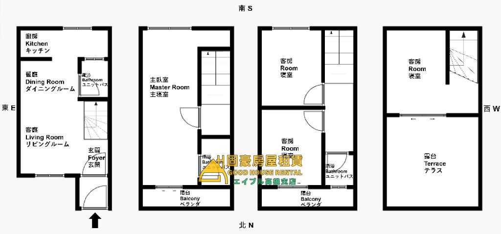 4.透天三樓半,二樓主臥空間超大,三樓有兩間次臥,頂樓有一儲藏間