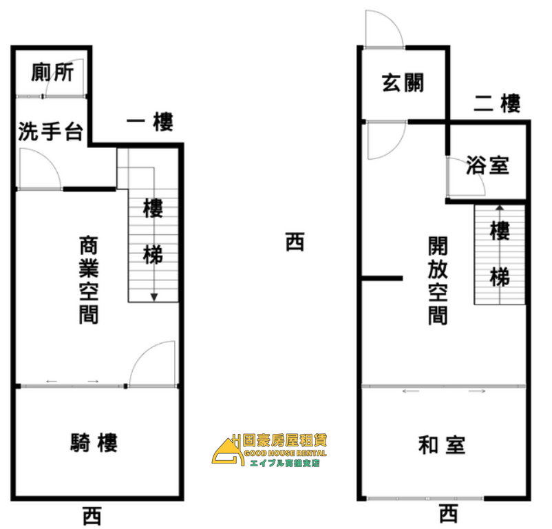 4.樓店1+2樓,1樓店面+騎樓,2樓有和室與開放空間,1、2樓有獨立出入口